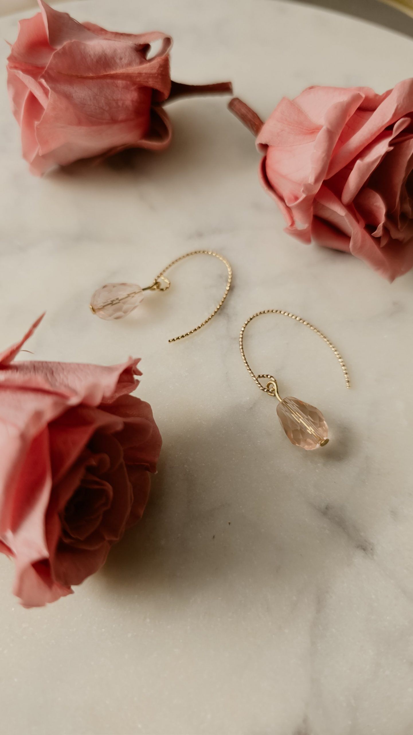 Die sanften Rosétöne der Glasperlen symbolisieren Romantik, Anmut und zeitlose Schönheit – perfekt für Hochzeiten, festliche Anlässe oder als stilvolles Statement im Alltag. Das minimalistische, aber edle Design macht diese Ohrringe zu einem vielseitigen Accessoire, das sich mühelos kombinieren lässt.
