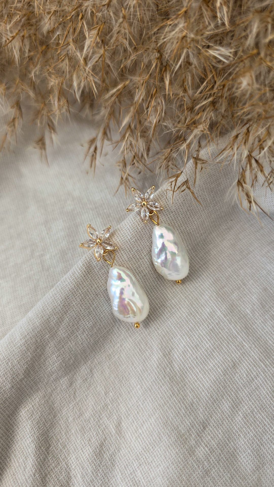 🌿 Material: 18K vergoldetes Messing, Süßwasserperlen, Zirkonia-Steine
