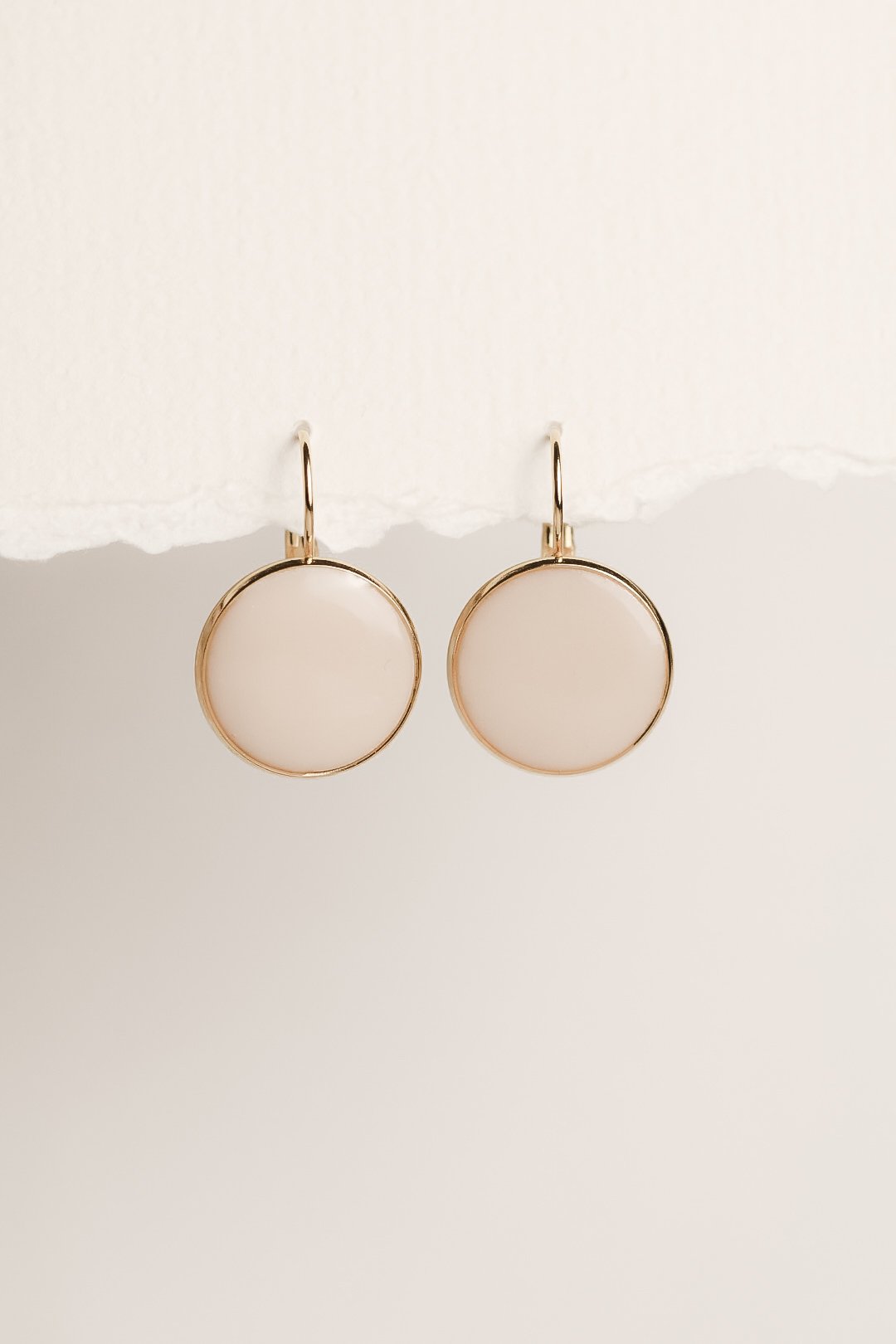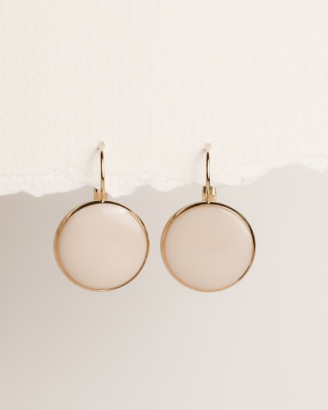 Die sanft schimmernde Oberfläche der runden Elemente wird von einer 18K Vergoldung eingefasst und verleiht den Ohrringen eine warme, edle Ausstrahlung. Jedes Paar wird mit höchster Sorgfalt handgefertigt und überzeugt durch klare Formen, feine Verarbeitung und ein harmonisches Gesamtbild.