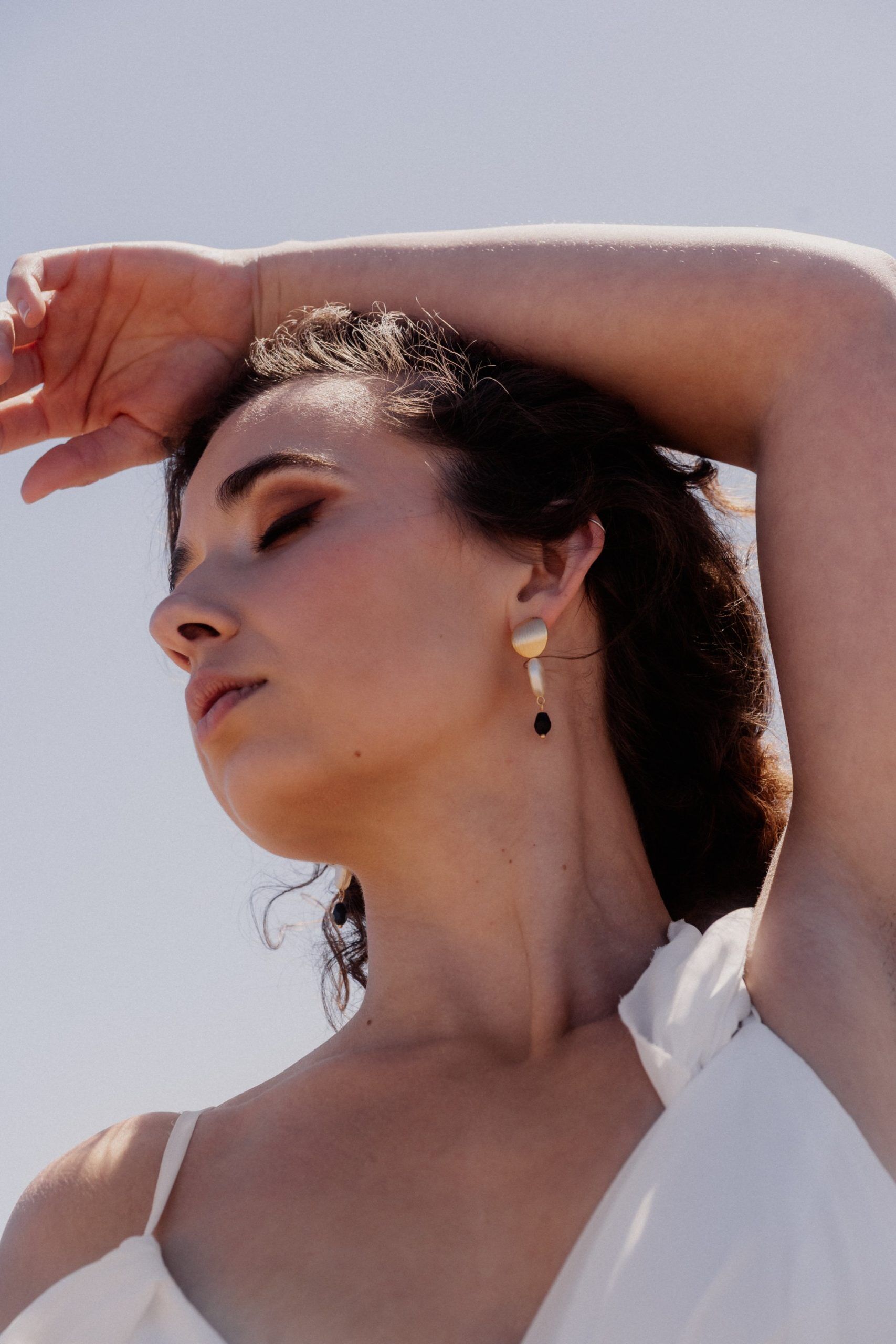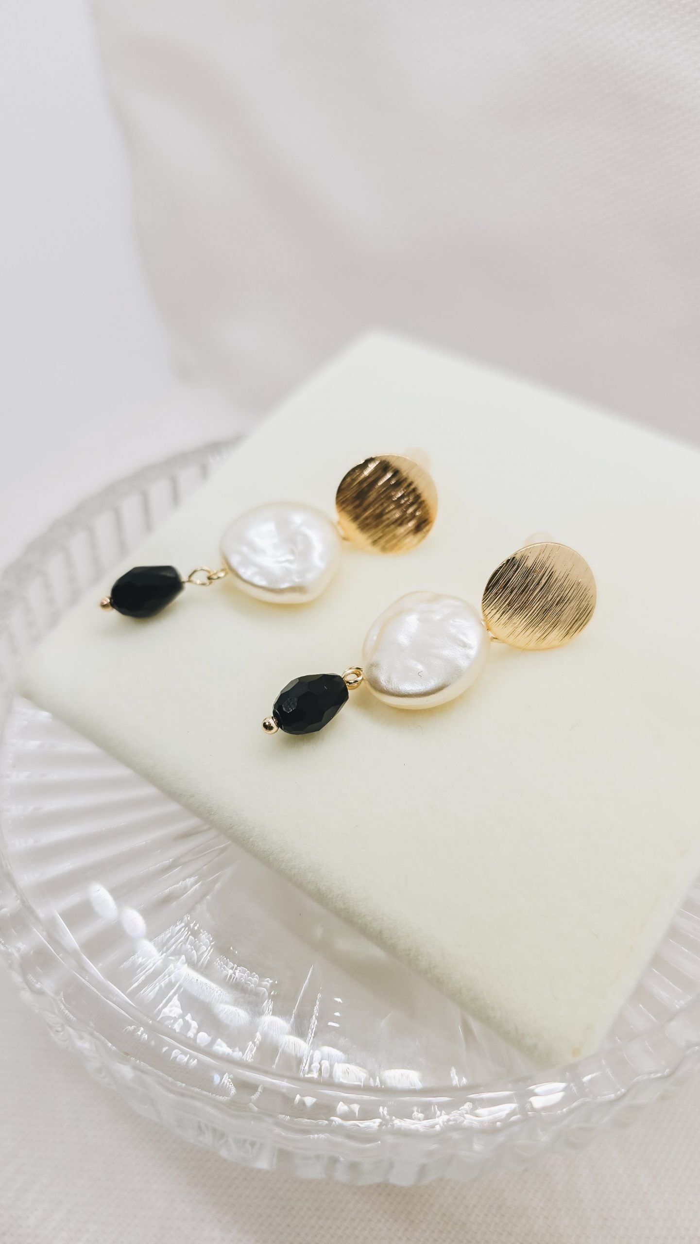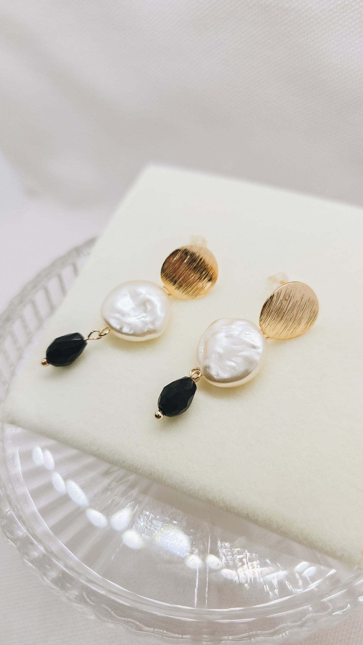 The Pearl Drops Earrings are a tribute to classic beauty and modern design. Handcrafted from stainless, gold-plated steel, they feature an elegant drop shape adorned with a finely faceted black glass bead – a statement of sophistication and simplicity.