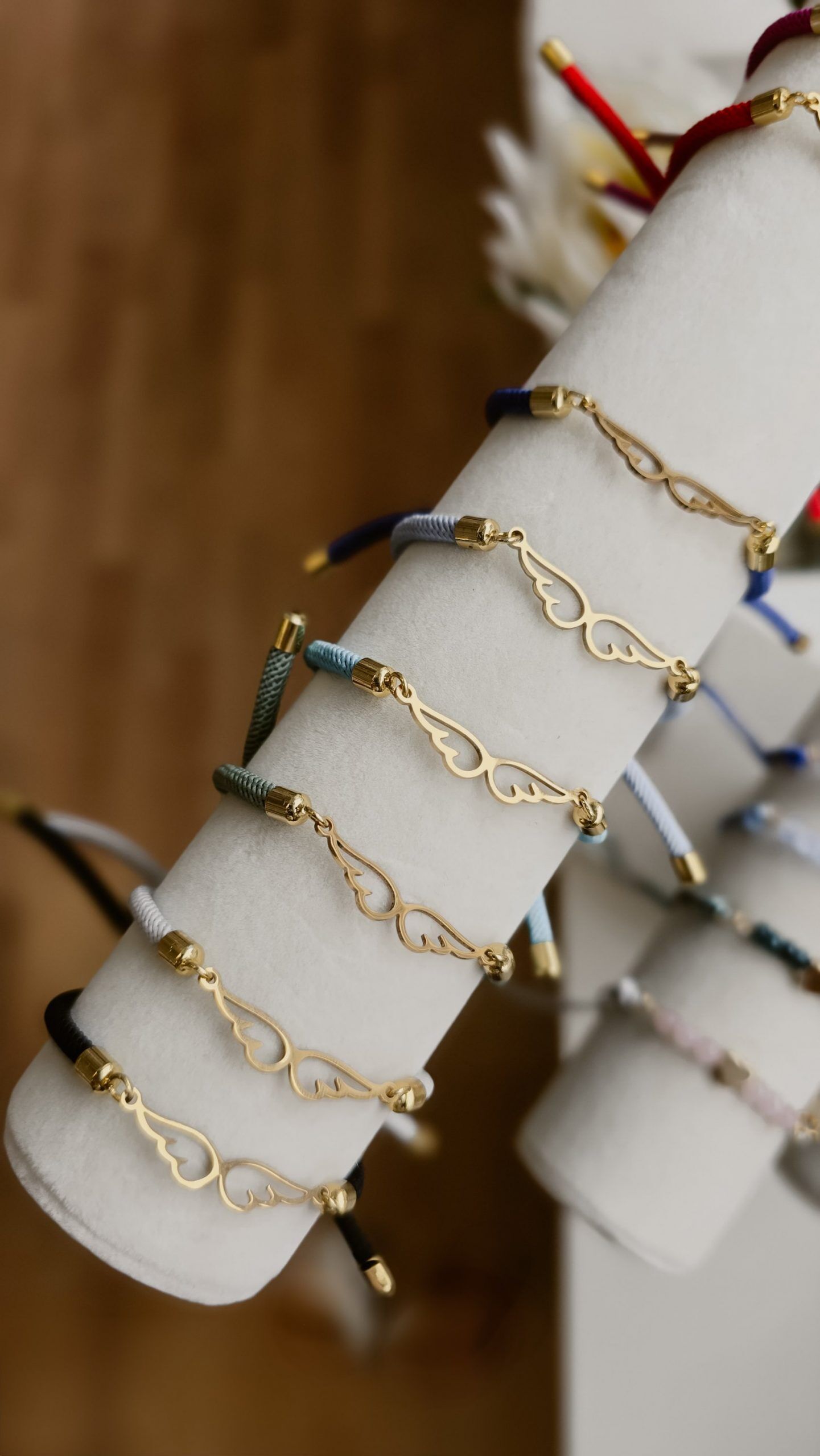 Dieses handgefertigte Armband ist mit einer hochwertigen, verstellbaren Kordel versehen und mit eleganten Goldakzenten versehen. Es ist leicht, langlebig und in vielen schönen Farben erhältlich. Ganz gleich, ob Sie sich schick machen oder Ihrem Alltagslook eine spirituelle Note verleihen möchten, Wings of Grace ist ein vielseitiges Schmuckstück voller Symbolik und Stil.